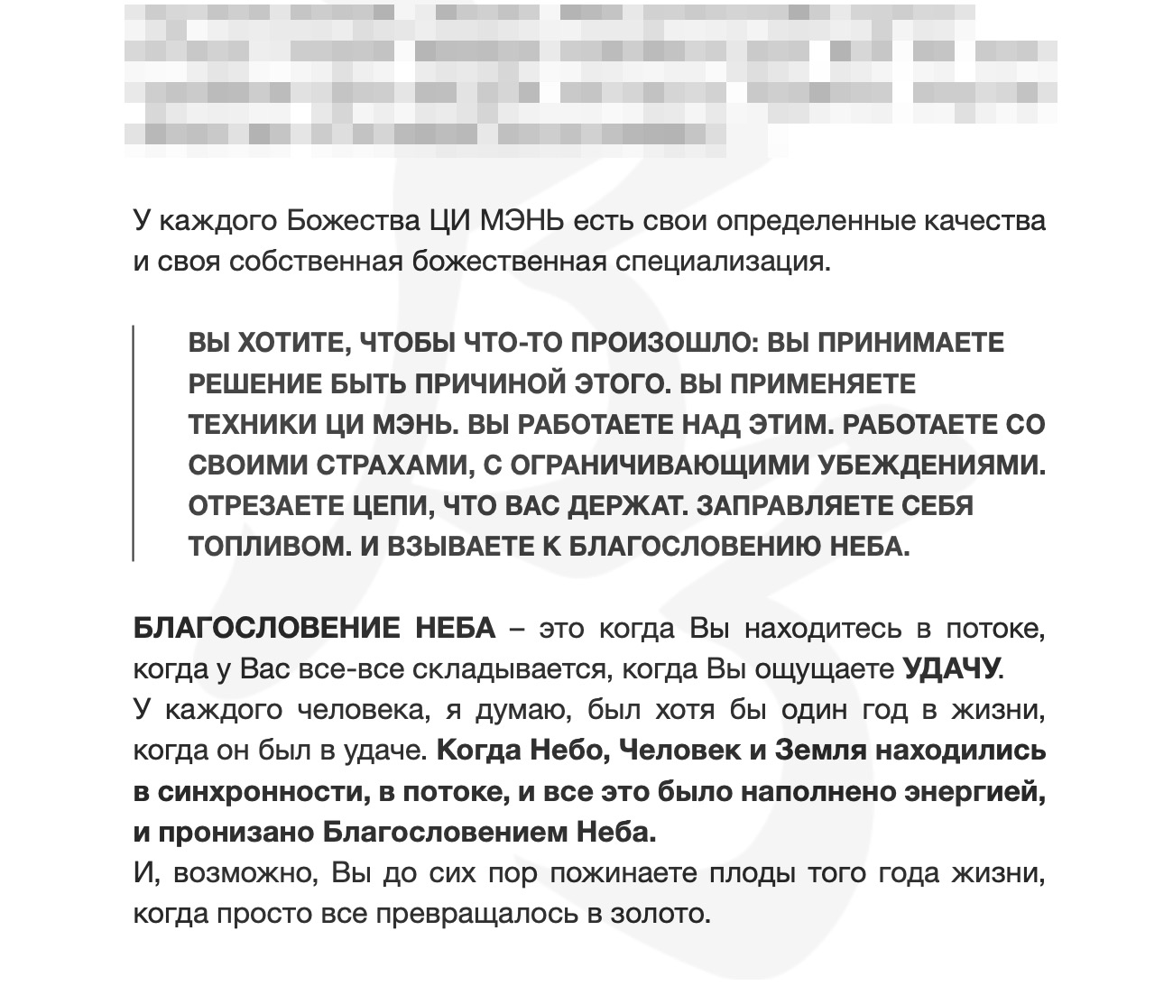 Приведенная на данной странице информация основана на моем личном опыте. Я не гарантирую, что у вас будет такой же результат как у меня. Я практикую китайские метафизические искусства более 20 лет. Ваши результаты могут отличаться от моих, и будут зависеть от многих факторов ... включая ваше трудолюбие, опыт, вашу стартовую позицию и ваше окружение. Если вы не согласны с этим, не покупайте этот продукт или услугу.